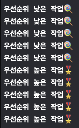 아주 직관적으로 우선순위를 알 수 있는 거 같아요 ㅋㅋㅋ