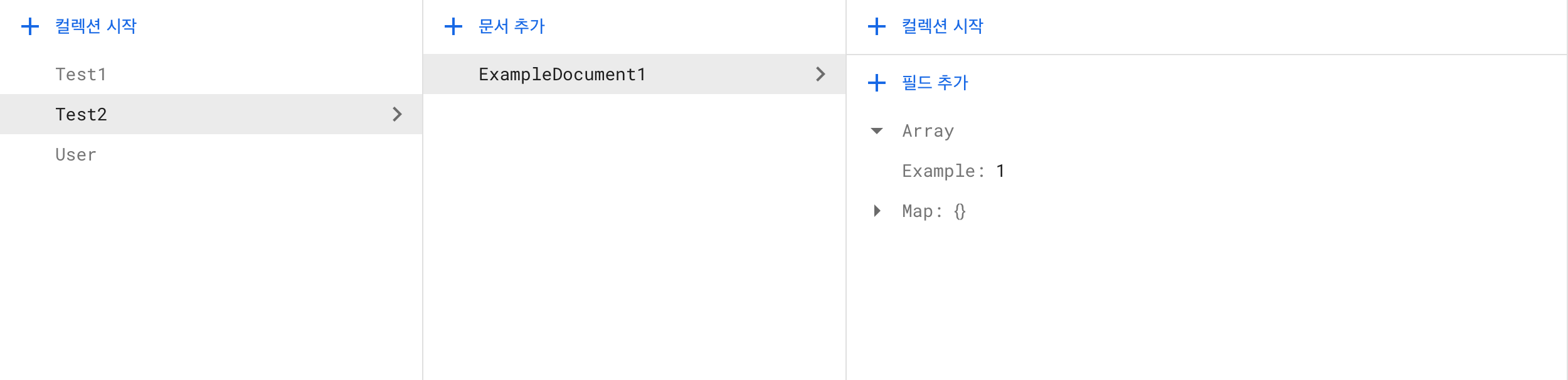 db.collection("Test2").document("ExampleDocument1")