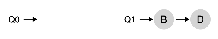 즉 이 상태에서 Q1에 있는 B,D 중 하나를 Q0로 옮겨주면 끝입니다. 그럼 이런 경우는 어떨까요?