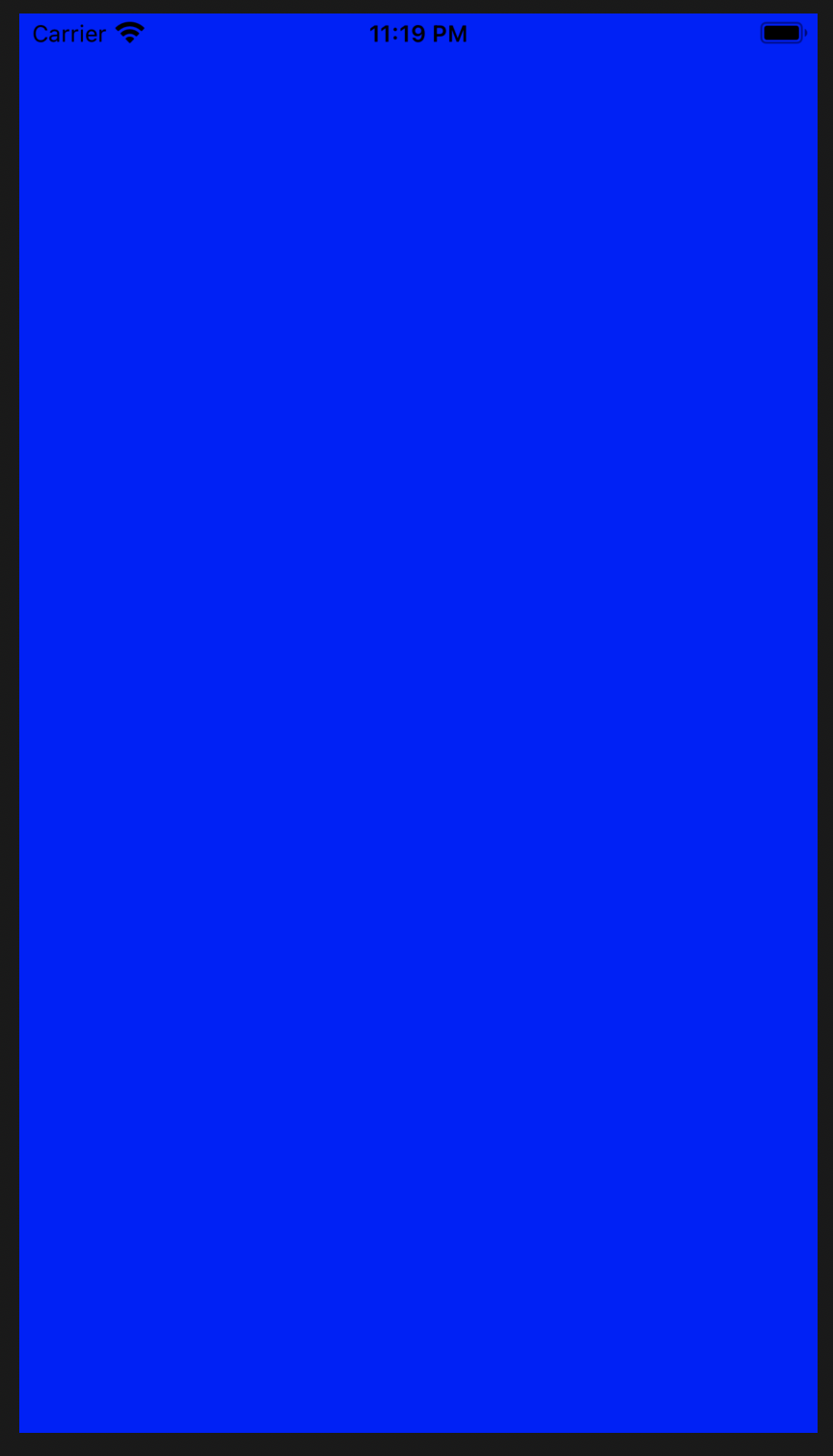 우선 이렇게 뷰의 배경을 파란색으로 설정한 ViewController를 정의해줍니다.