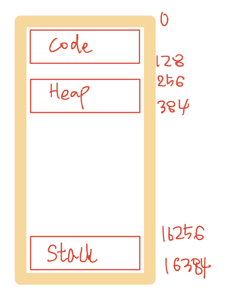 그럼 실제로 주소변환을 해보겠습니다. 지금 주소 공간을 잠깐 그려보면..