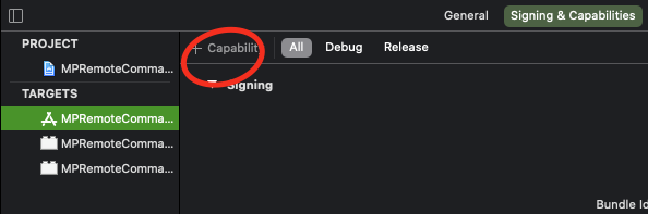 일단 app target으로 가서 capability 탭으로 이동해줍니다.