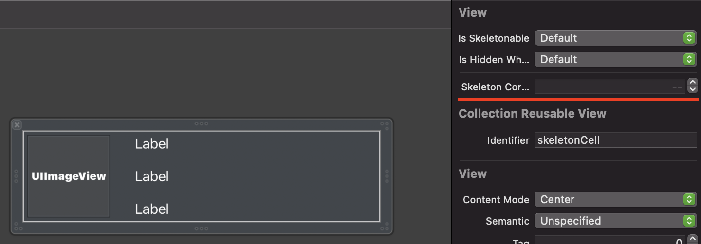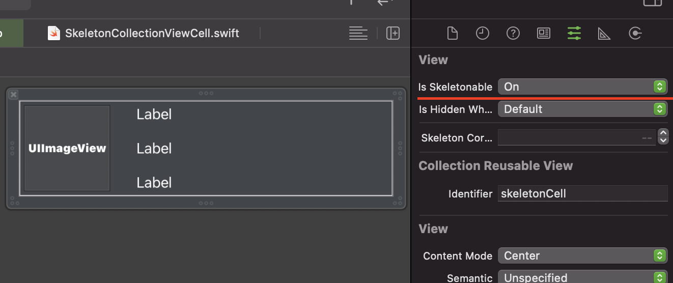 이렇게 직접 설정해주시면 됩니다. 가장 중요한 것은 cell 자체를 스켈레톤 뷰로 만들어줘야 한다는 점입니다!