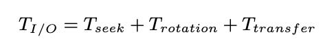 그럼 디스크가 어떻게 작동하는지를 대략적으로 알았으니 이젠 디스크 요청에 소요되는 시간을 계산할 수 있는데요, 식은 다음과 같습니다.
