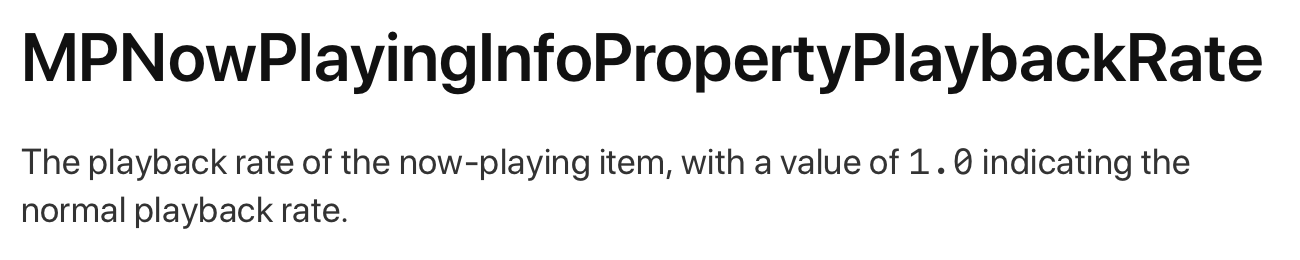 여기서 이러한 오류를 발생시키는 녀석은 MPNowPlayingInfoPropertyPlaybackRate 입니다.