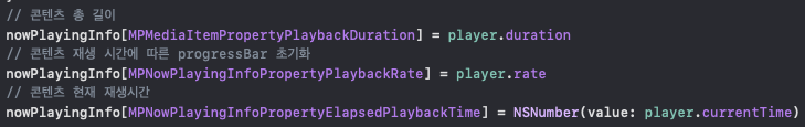 일단 저 같은 경우엔 nowPlayingInfo를 아래와 같이 정의해줬습니다.