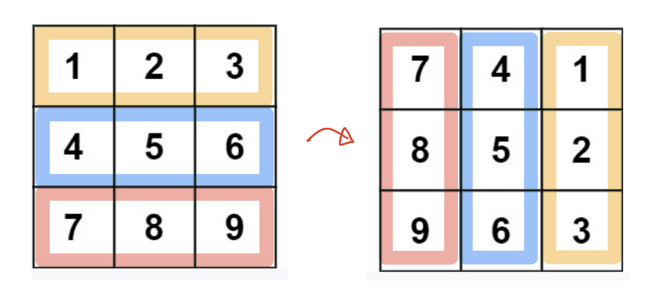 Input: matrix = [[1,2,3],[4,5,6],[7,8,9]] Output: [[7,4,1],[8,5,2],[9,6,3]]