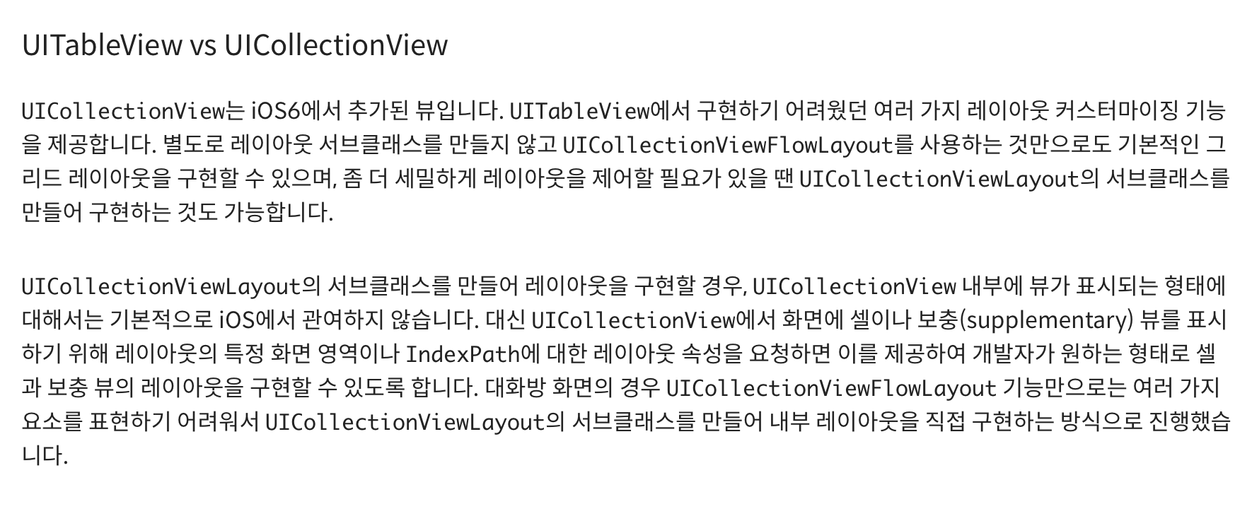 위의 글에서 테이블 뷰에서 컬렉션 뷰로 리팩토링 하는 이유는 아래와 같았다.