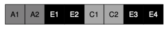 또한 여유 공간에 대하여 관리 방법을 따로 정하지 않았기 때문에 파일 시스템이 조각화 될 수 있었고 이는 결국 파일들을 접근할 때 비 효율적으로 접근하게 되는 원인이 되었습니다. 예를 들어 디스크 블록 2개를 사용하는 파일 4개가 있는 상황을 생각해보겠습니다.