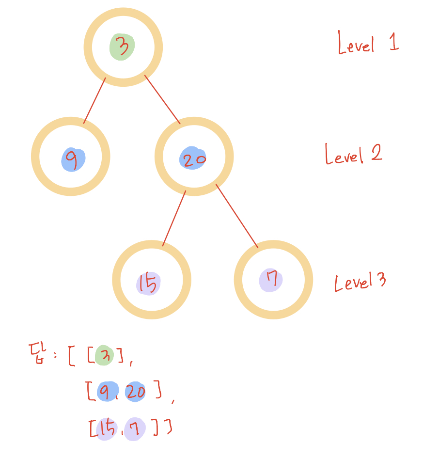정답 배열의 원소수가 만약 현재 보고 있는 레벨과 같다면 지금 보고 있는 노드가 해당 레벨의 가장 왼쪽 노드라는 뜻이기 때문에 해당 레벨의 배열을 새로 만들어서 정답 배열에 추가해주시면 됩니다.