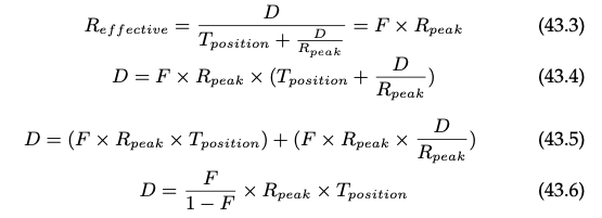 위와 같이 계산됩니다. 우리는 유효 쓰기 속도인 Reffective가 큰 값을 얻고 싶고 이 값이 커진다면 대역폭의 최대 효율을 낼 수 있게 됩니다. 대역폭 사용량을 F라고 할 때 F * 디스크 성능이 Reffective가 되는데요, 지금까지 얻어낸 식으로 새로운 식을 얻을 수 있습니다.