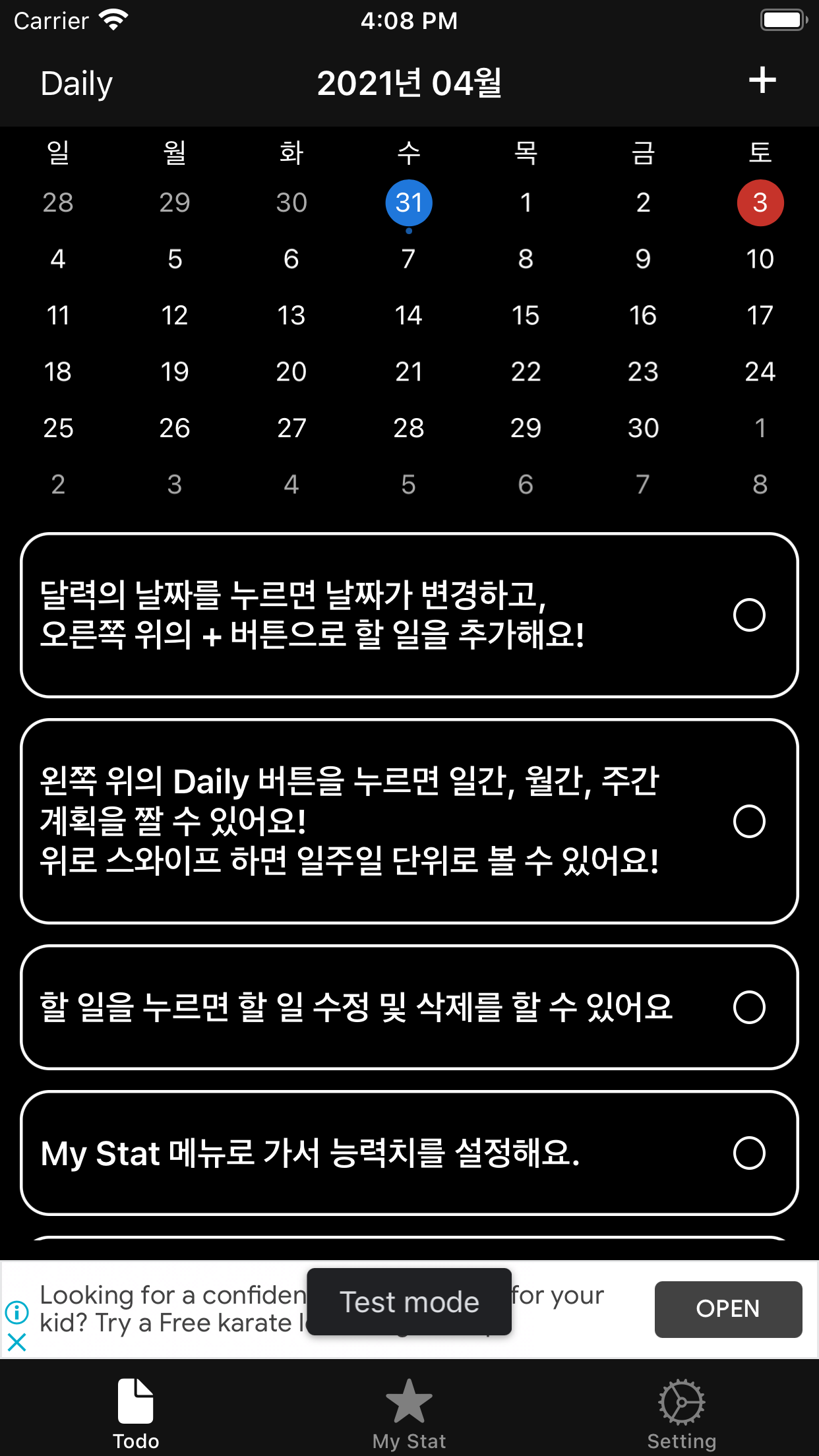 처음 iOS를 공부하며 작성한 기존의 코드는 공부를 좀 더 한 지금의 내가 보니 정말 많이 부족해 보였다. 언젠가 미래의 내가 이번에 작성한 코드를 볼 때에도 비슷한 느낌을 받도록 열심히 공부해야겠다. 비교적 간단한 기능이라고 생각하고 시작했던 이번 업데이트가 2주가 걸렸다는 것에 놀랐고, 다음 기능으로는 할 일을 미루는 기능, 능력치의 상승을 그래프로 보여주는 기능을 생각하고 있다. 할 일을 미루는 기능은 비교적 쉬워 보이는데, 문제는 그래프를 그리는 기능이다. 이 부분도 잘 고민해서 직접 모두 구현해봐야지~