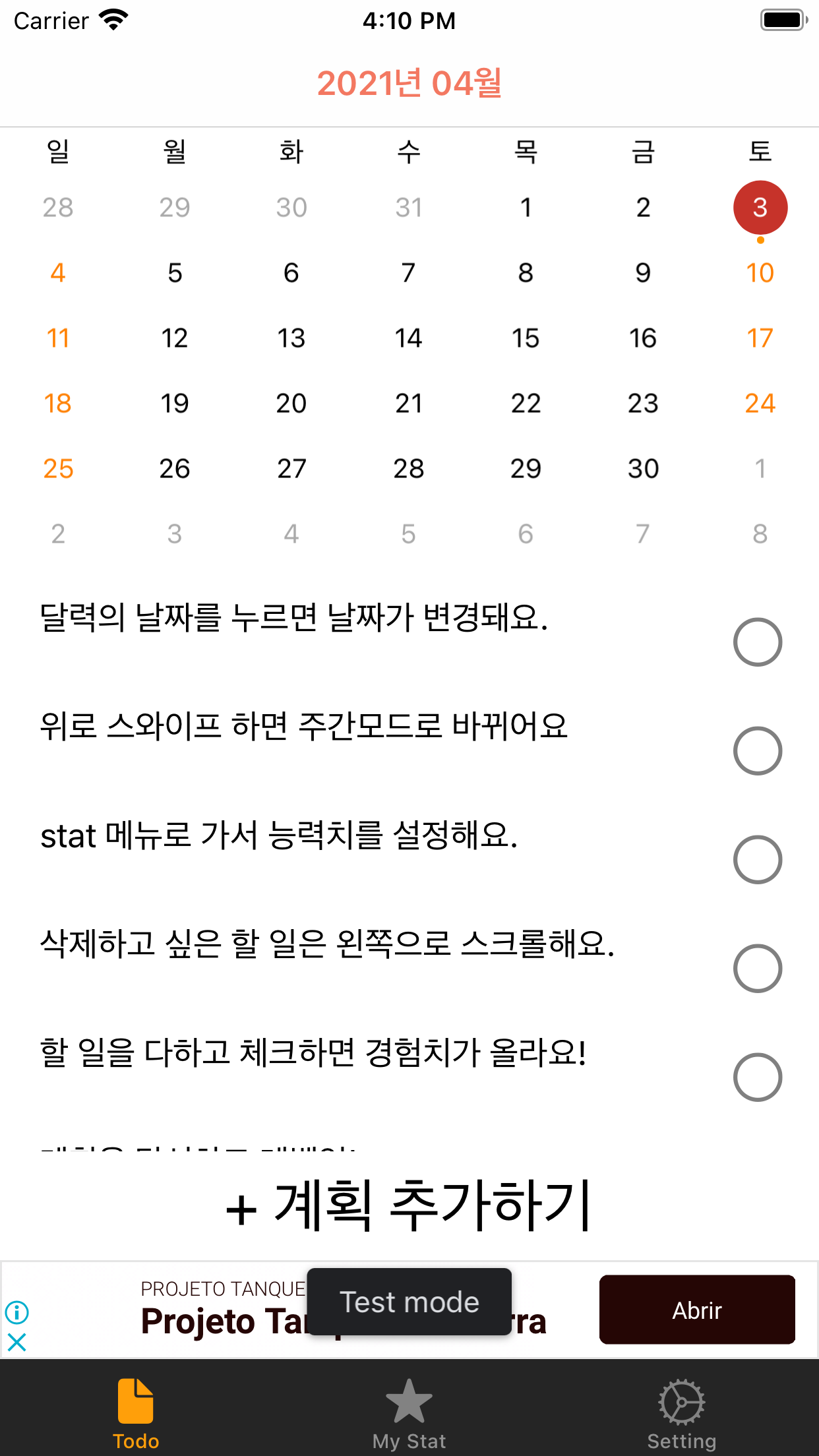UI 개선, 주간, 월간 계획 기능 추가 및 능력치를 맘대로 설정할 수 있는 기능.