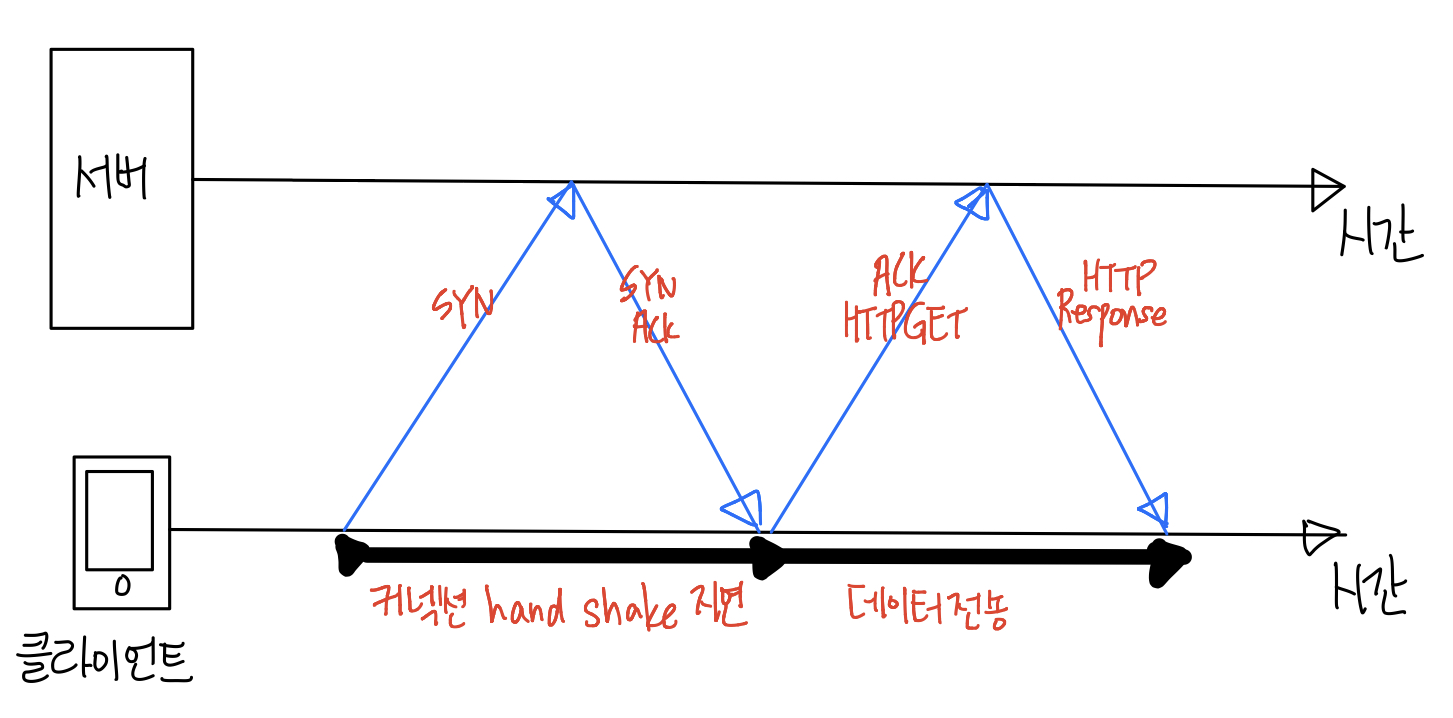 일단 HTTP 요청 과정에서 TCP 커넥션에 의해 어떻게 지연되는지 살펴보겠습니다.