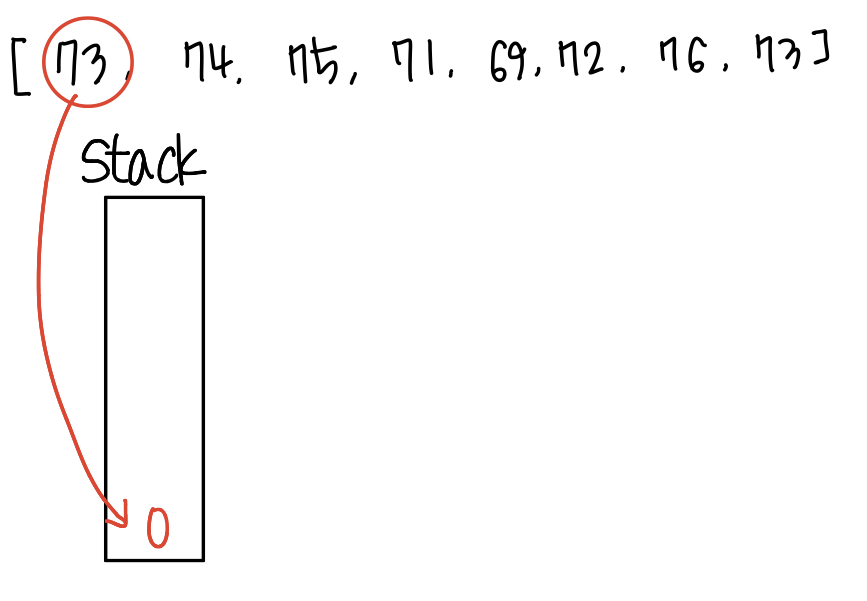 위의 그림은 첫 번째 인덱스 값인 0을 스택에 넣는 과정이에요.