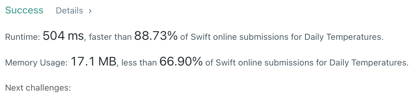 Note: The length of temperatures will be in the range [1, 30000]. Each temperature will be an integer in the range [30, 100].