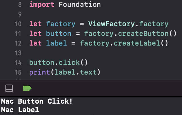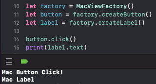 위와 같이 추상 팩토리 역할을 하는 코드를 만들게 되면 ViewAbstractFactory 프로토콜을 채택한 것들은 Button 프로토콜을 채택한 객체를 반환하는 createButton(), Label 프로토콜을 채택한 객체를 반환하는 createLabel() 메서드를 가져야 한다는 뜻이 됩니다.