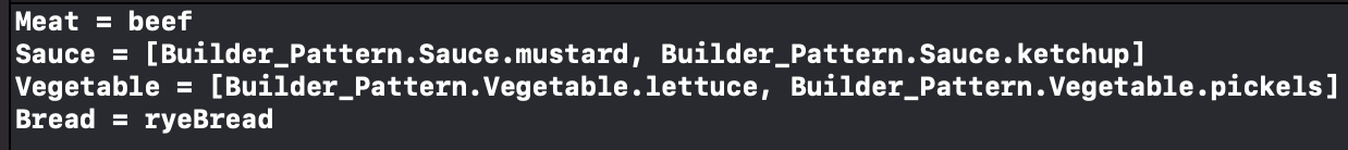 var hamburgerWithoutBuilder = Hamburger(meat: .beef,