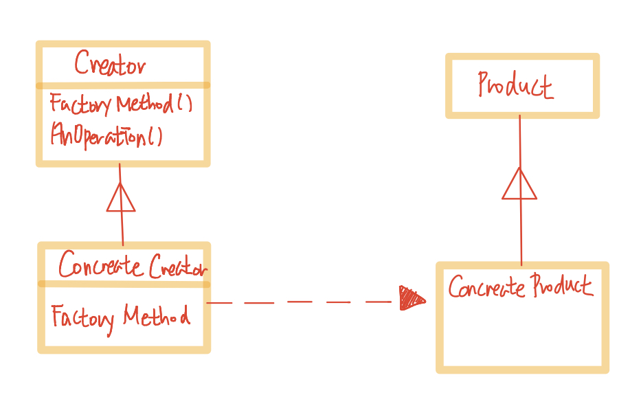 팩토리 메서드 패턴은 위와 같은 구조를 갖습니다.