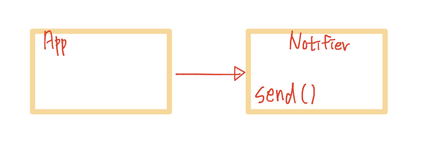 위와 같이 어떤 프로그램에서 중요한 이벤트가 발생했을 때 사용자에게 알림을 주는 라이브러리가 있다고 생각해보겠습니다. 처음에는 단순하게 이메일을 통해서만 알림을 줄 수 있는 라이브러리였는데요, 시간이 지나 다양한 플랫폼이 생기며 사용자들은 다양한 플랫폼에서 알림을 받고 싶어 졌습니다.