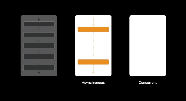 제가 가장 궁금했던 내용입니다. Swift 5.5부터는 드디어 async, await가 도입되면서 비동기, 동시 프로그래밍을 쉽게 작성할 수 있게 되었습니다. 아주 친절하게도 영상에서는 Asynchronous(비동기), Concurrent(동시)부터 알려준다고 합니다.