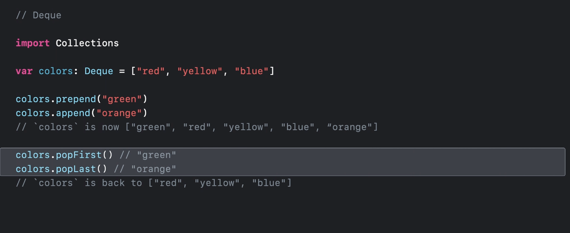 먼저 새로 생긴 Swift Collection은 Swift에서 사용할 수 있는 자료구조를 확장해주는 패키지인데, 패키지를 사용하면 위의 세 자료구조가 새롭게 사용 가능하다고 합니다. 이 정도는 언어 자체에 추가를 해주는 게..🥲 직접 Deque를 만들어서 사용한 기억과 OrderedSet은 Core Data를 사용해보며 이미 사용한 경험이 있는 거 같은데? 뭔가 이상하네요.