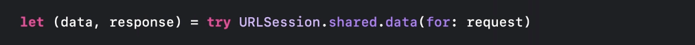 위의 코드가 Swift 5.5 이전의 비동기 코드입니다. 네트워크 호출을 위해 URLSession을 사용하고 dataTask 메서드로 비동기 작업을 수행합니다. 완료되면 클로저를 실행하게 되죠. 이렇게 작성된 코드는 실행 순서와 코드 순서가 달라서 조금 어색하게 보였어요. 그리고 이렇게 completion handler를 사용하면 try / catch를 사용한 오류 처리도 사용할 수 없습니다.