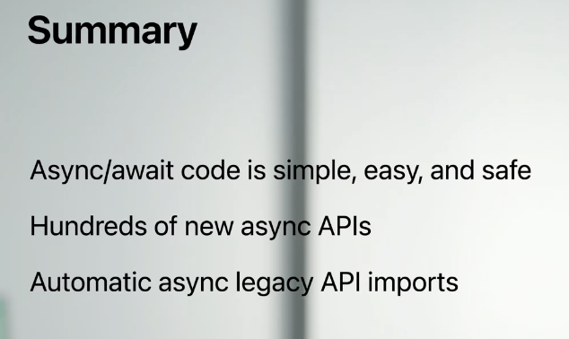 그럼 오늘 WWDC 영상인 "Meet async / await in Swift"는 여기까지 정리하도록 하겠습니다.