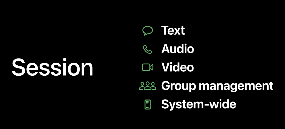 모든 것은 Session에서 시작됩니다. 어떤 그룹에 속한 인원들이 뭔가를 시작하기 전에 모두 공유할 준비가 되도록 Session에 참가해야 하죠. 사용자가 session에 참가하면, 기존에 가능했던 text, audio, video를 통해 소통이 가능합니다. 그리고 사용자에게 session을 관리할 수 있는 일관된 system-wide를 제공합니다. 사용자는 session에 새로운 사람을 추가하거나, 떠날 수 있고, session에 참가한 사용자는 전체 시스템을 탐색하고 모든 앱에 접근할 수 있다고 합니다.