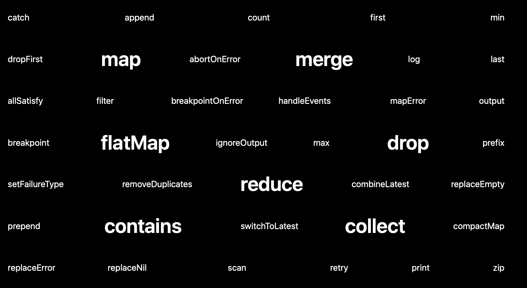 많은 작업을 모두 수행하는 몇 개의 Operator를 제공하기보다는 간단한 작업을 수행하는 Operator를 많이 제공해해서 이해하기 쉽게 만들었다는 의미로, 개발자들이 쉽게 이해할 수 있도록 Swift Collection API에서 이름을 많이 따왔다고 하네요.