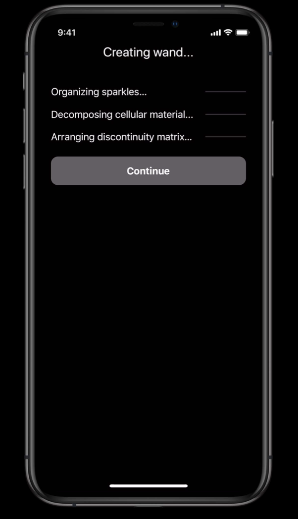 계속해서 예를 들던 마법사 계정 만들기 앱에서 이번에는 지팡이를 생성하는 단계를 보겠습니다. 지팡이를 만들기 위해서는 3개의 오래 걸리는 비동기 작업이 완료되어야 한다고 하네요. 따라서 3개의 작업이 모두 완료될 때 continue 버튼을 활성화하고 싶다고 합니다. 이럴 때 zip을 사용하면 된다고 합니다!