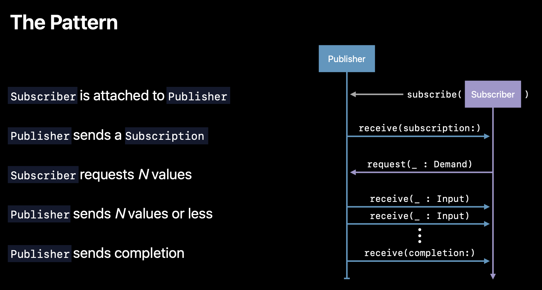 - Combine은 Request driven(요청 기반)이므로 앱의 메모리 사용량과 성능을 잘 관리할 수 있다고 합니다.