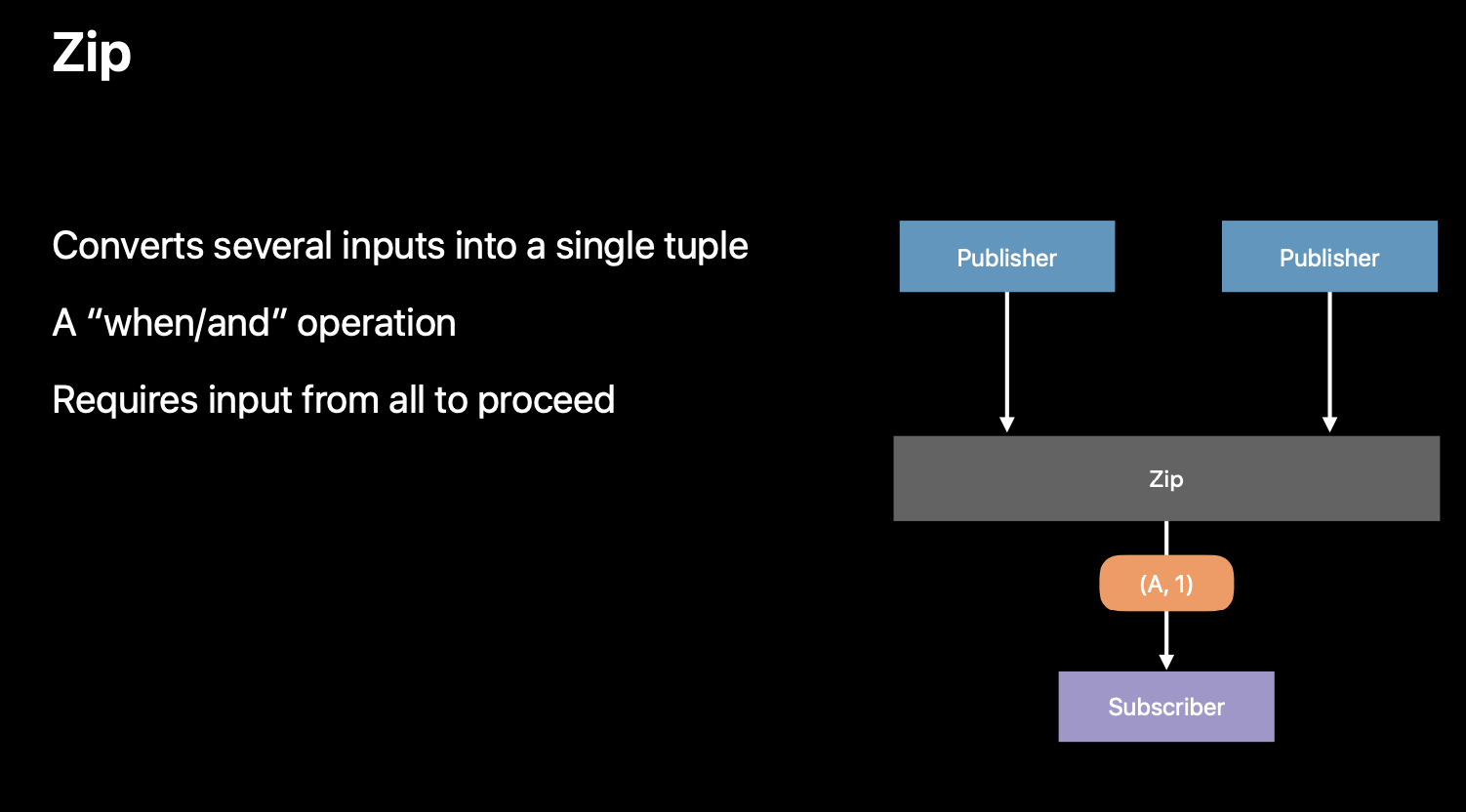 지금까지 살펴본 Map, Filter는 주로 동기 작업을 위한 API 였습니다. 하지만 Combine은 비동기 작업을 할 때 빛을 발하기 때문에 이를 위한 Zip, CombineLatest라는 Operator도 살펴보겠습니다.