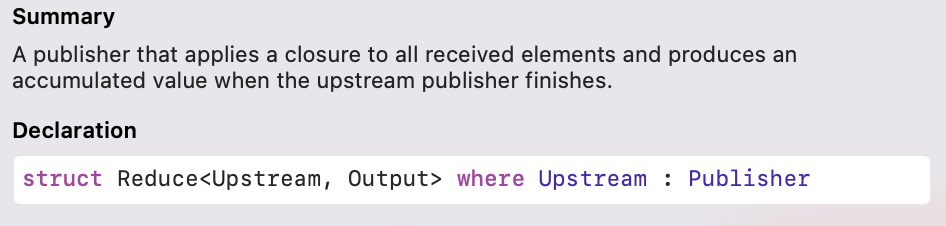 Upstream에서 받은 값들을 클로저로 처리한 뒤 가지고 있다가 Upstream이 completion 되면 Downstream으로 마지막으로 처리된 값을 내려보내는 Publisher입니다.