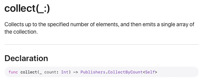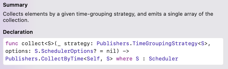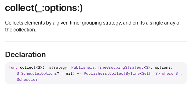 CollectByTime을 활용해서 만든 Operator는 collect(_:options:)입니다.