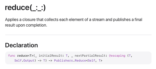 이렇게 Combine의 Operator 중 Reducing Operator로 분류된 것들에 대해 알아봤습니다.