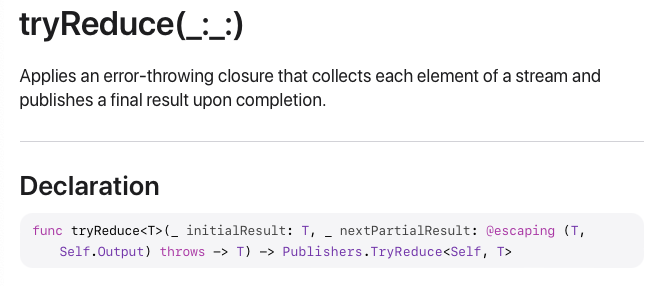 TryReduce를 사용해서 만든 Operator는 tryReduce(_:_:)입니다.