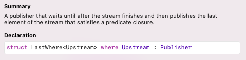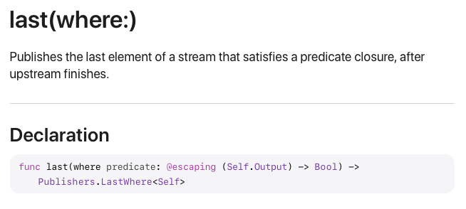 LastWhere Publisher를 활용해서 만든 Operator는 last(where:)입니다.