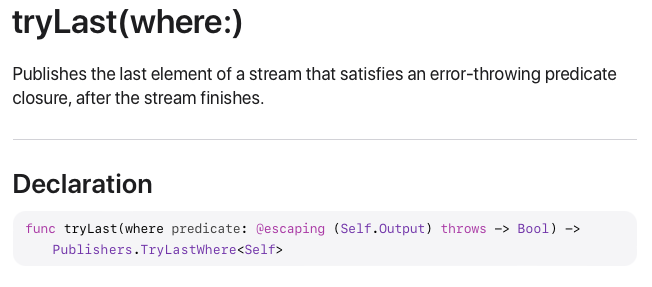 TryLastWhere을 활용해서 만든 Operator는 tryLast(where:)입니다.