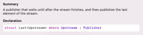 LastWhere Publisher는 주어진 클로저를 만족하는 값들 중 가장 마지막 값을 내려보내는 Publisher입니다.