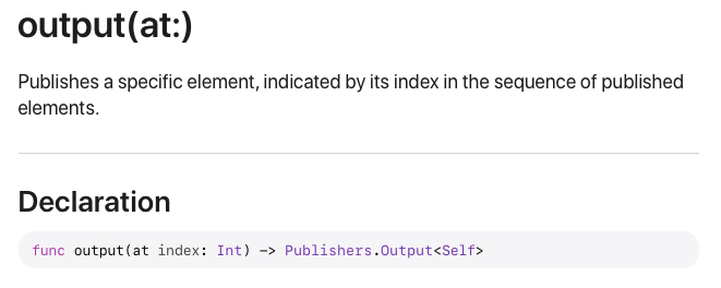 Output Publisher를 활용해서 만든 첫 번째 Operator는 output(at:)입니다.