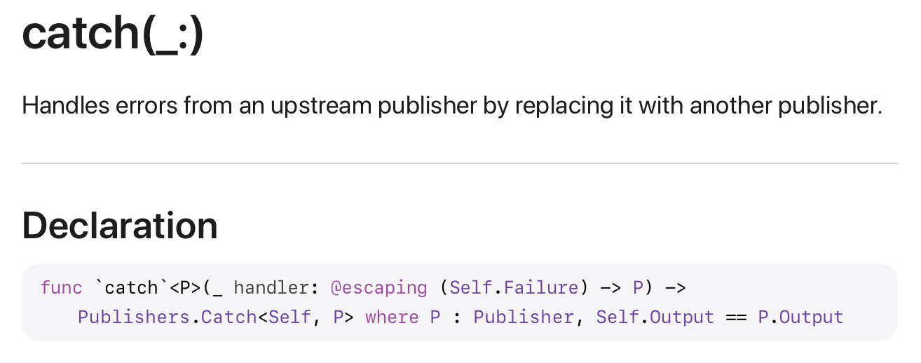 이렇게 Combine의 Publisher와 Operator 중에서 Handling Errors로 분류된 것들에 대해 알아봤습니다. 실제로 앱을 만들 때 아주 유용할 거 같다는 생각이 많이 드네요.