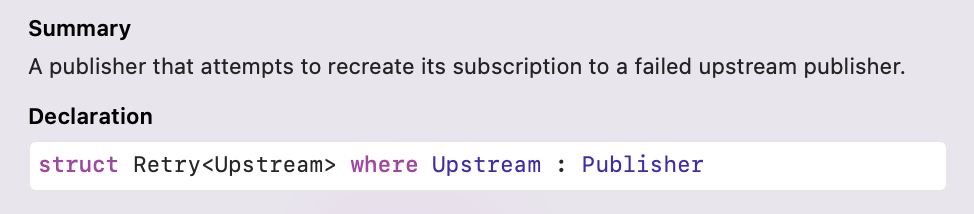 Retry Publisher를 활용해서 만들어진 Operator는 retry(_:)입니다.