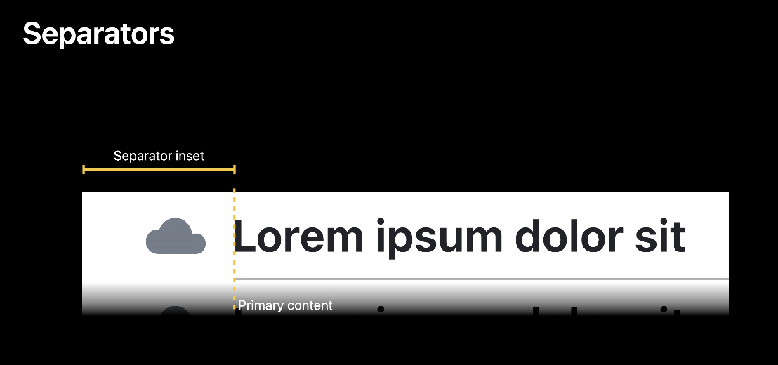 애플의 주장은 separator가 셀의 기본 콘텐츠와 정렬되어야 하는데 위 UI에서는 기본 콘텐츠가 Label이라는 겁니다.