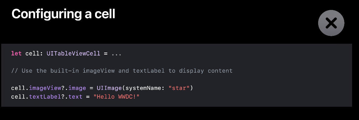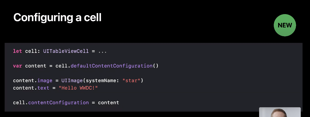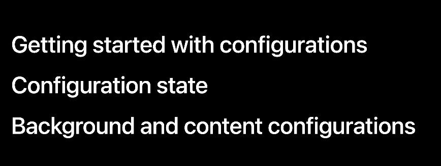 위와 같은 세 가지를 알려준다고 합니다. 풀어쓰자면, 새로운 개념인 configuration으로 셀을 설정하는 방법을 알아보고, configuration state, background configuration, content configuration까지 알아볼 예정인 거 같아요.