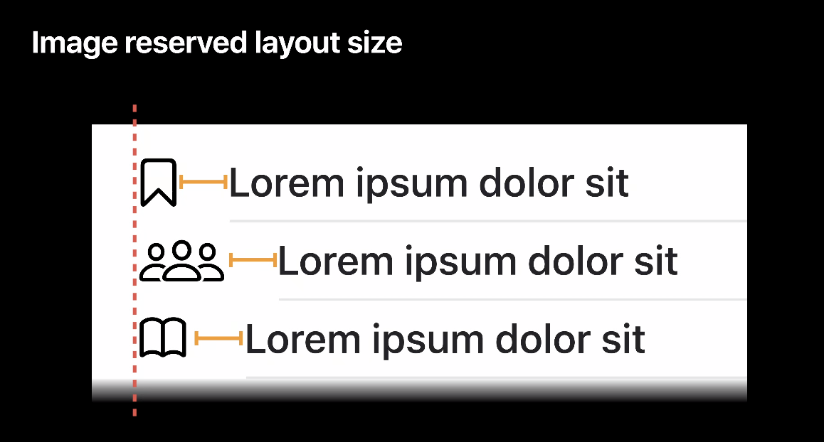 빨간색 점선이 이미지에 대한 reserved layout size라고 합니다. reserved layout size는 이미지의 실제 크기에 영향을 주지도 않는데, 실제로 위와 같이 reserved layout size보다 이미지 사이즈가 클 경우 확장되어 보이는 것을 알 수 있습니다.