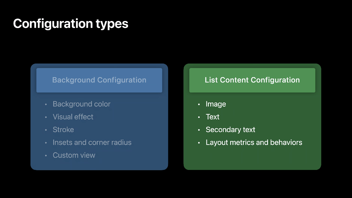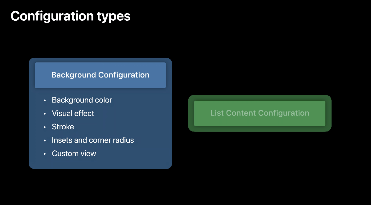 지금까지 configuration이 다양한 상태에 대한 업데이트 하는 방법에 대해 알아봤는데요, 이번 섹션에서는 background, content Configuration을 사용할 때 알아야 할 세부 정보를 알려준다고 합니다!