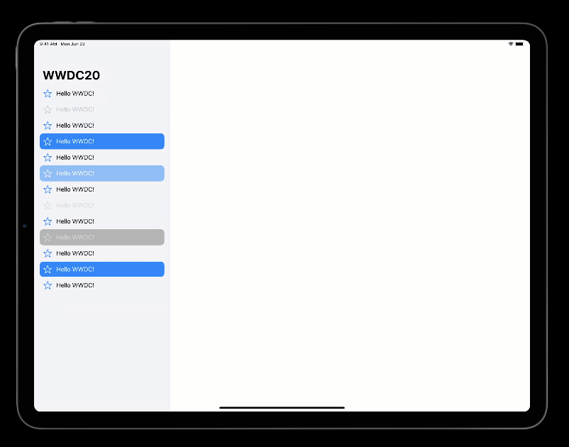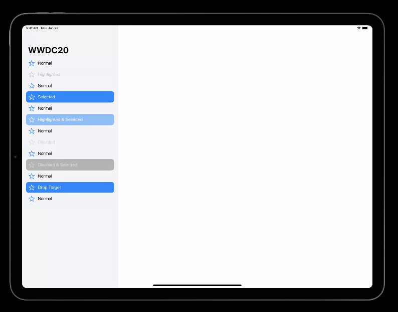 그래서 sidebar 스타일로 셀을 만든 화면을 보면 위와 같습니다. 그리고 상태에 따라 background와 content 모양도 바뀌는 것을 볼 수 있어요.
