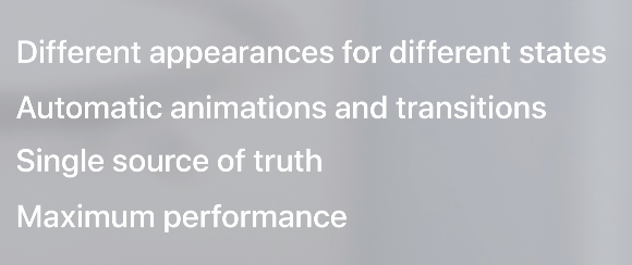 이렇게 configuration은 상태별 처리를 잘해주며, 애니메이션 처리도 애니메이션 내부에서 configuration을 설정해주기만 하면 된다고 하네요. 그리고 매번 새로운 configuration을 적용해 주기 때문에, 언제나 현재 적용된 것만 신경 쓰면 됩니다! 그리고 configuration은 성능도 좋다고 합니다. 부드러운 스크롤을 원한다면 적용해 보라고 하네요.