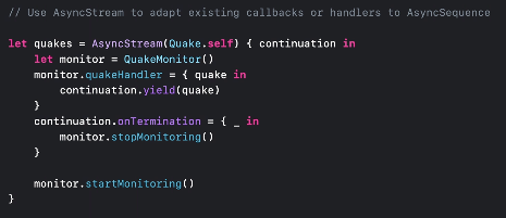 그래서 새로운 AsyncSequence가 뭔지도 알겠고 뭐가 새로 나왔는지도 알겠는데, 그래서 기존 코드에 어떻게 쓰라고?라는 생각이 들 때쯤 그 방법을 알려줍니다.😄